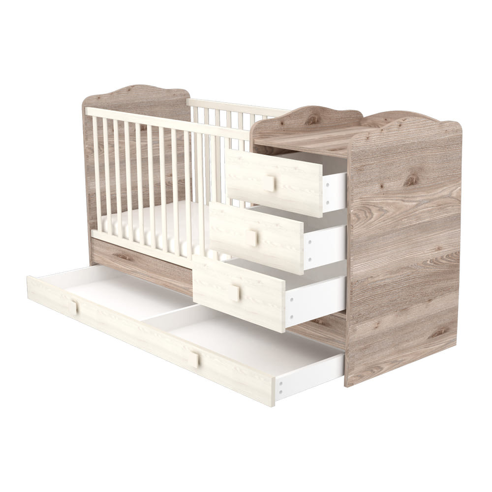 Kombinált kiságyunk megfelelő választás kisebb babaszobák berendezése során, hiszen egyszerre kombinálja a klasszikus rácsos kiságyat a pelenkázószekrénnyel, ám jóval kisebb helyet elfoglalva, mint a két bútordarab külön-külön.