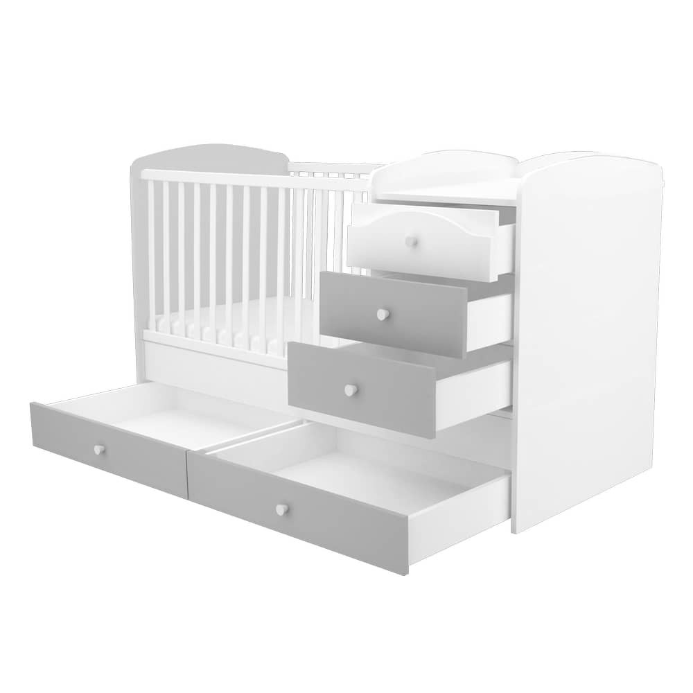 Maxi Kombi kiságyunk megfelelő választás kisebb babaszobák berendezése során, hiszen egyszerre kombinálja a klasszikus rácsos kiságyat a pelenkázószekrénnyel, ám jóval kisebb helyet elfoglalva, mint a két bútordarab külön-külön.