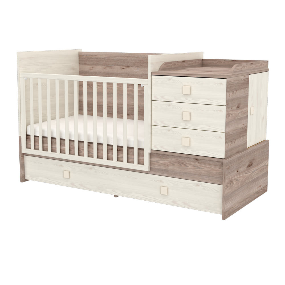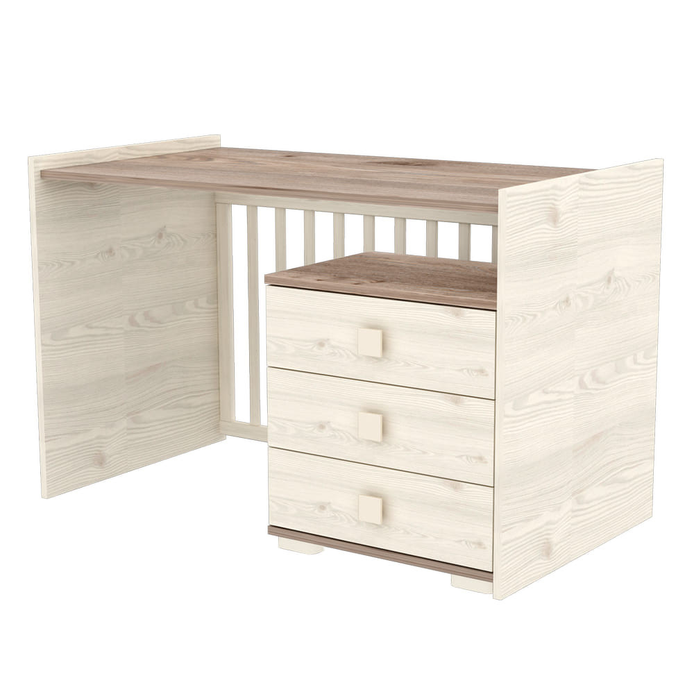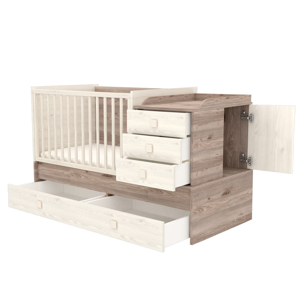 A pelenkázószekrény jobb és bal oldalra egyaránt felszerelhető. Pelenkázó feltéte elforgatható, így szemből és oldalról is egyaránt használható. Rácsaiból 2 oldalpálca könnyen kivehető, ennek köszönhetően, ha gyermeke már önállóbb, egyedül ki-be járkálhat, így nem szükséges mindig kisegíteni őt onnan. Eközben mégis biztonságosabban alszik, mint egy sima heverőn, hiszen így a rácsoknak köszönhetően nem gurul le. Az ágy alatt található síneken futó ágyneműtartó teszi még praktikusabbá a gyermekágyat, segítve ezzel a kényelmes tárolást.