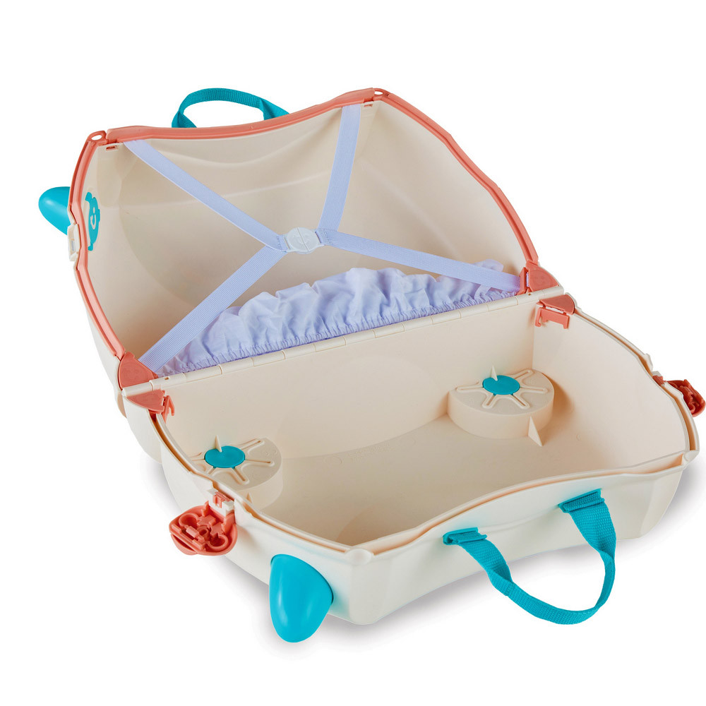 A világ elsõ lábbal hajtható és ülõkeként is használható gyermekbõröndjével! Díjnyertes angol dizájn. A gyermek húzhatja maga után, vagy rá is ülhet, és ha elfáradt, húzhatjuk is rajta.