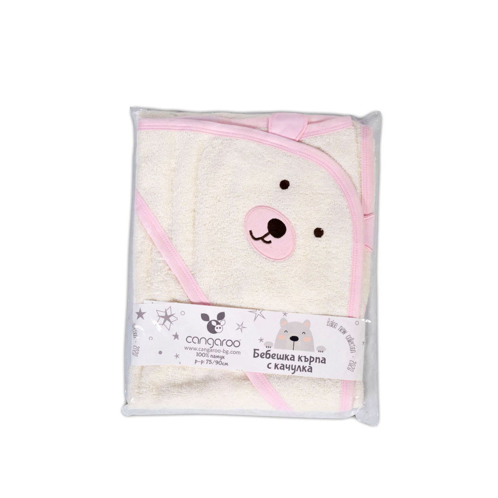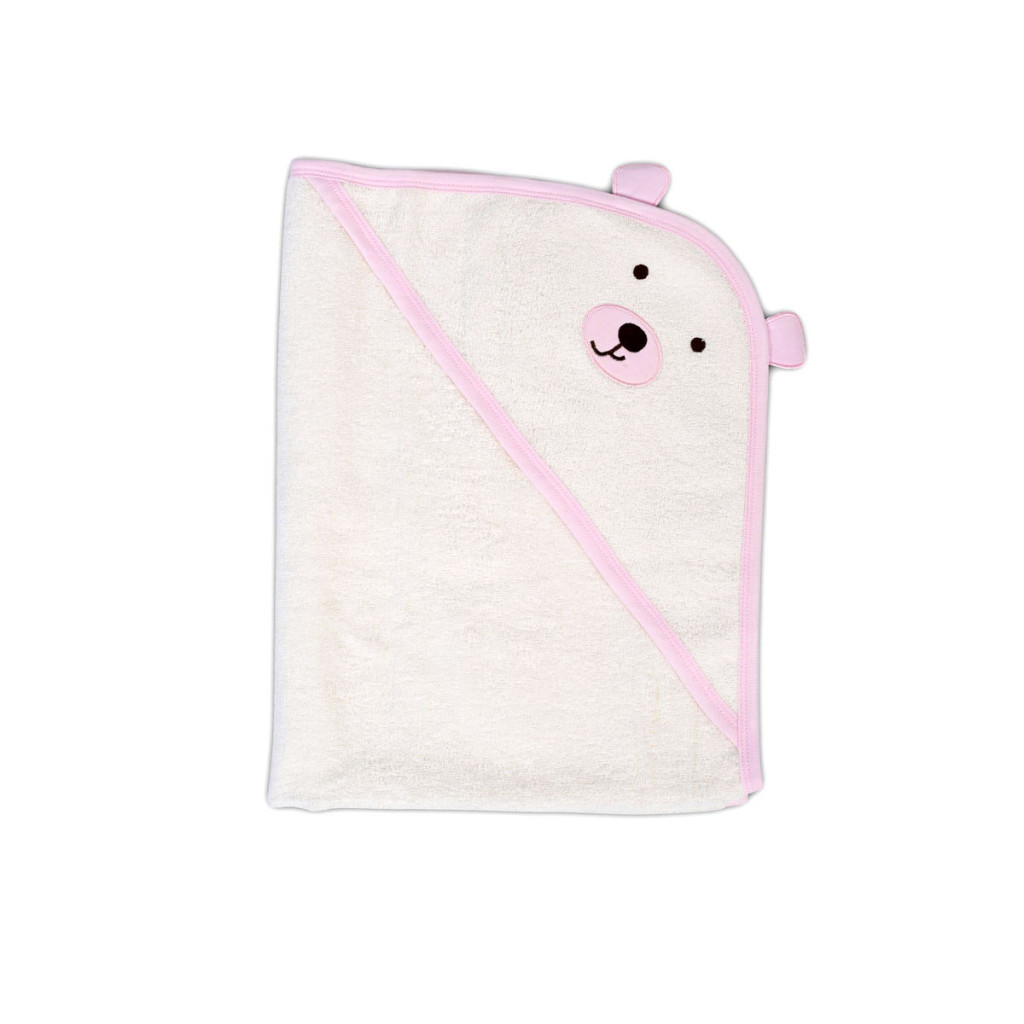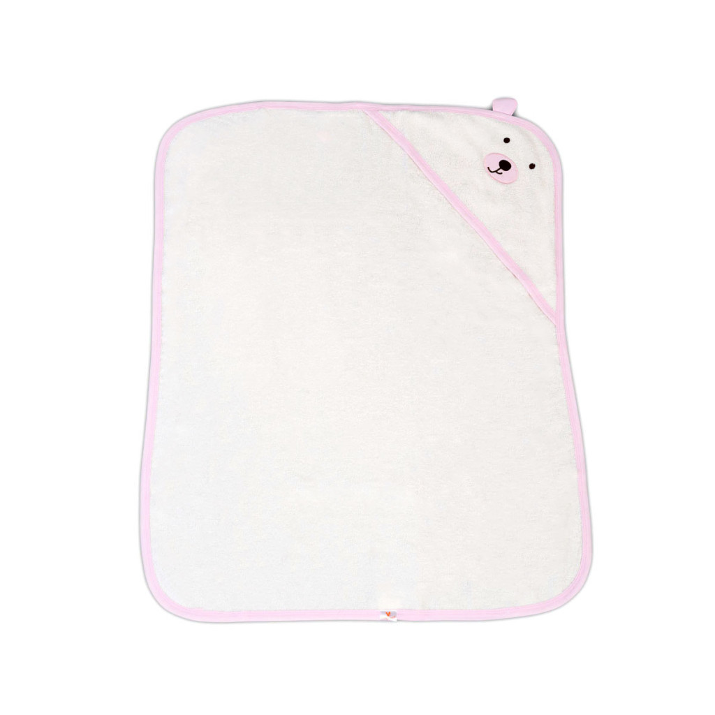 MONI Baloo kapucnis törölköző/pamut maci füles fehér kifogó 70x90cm, szegés pink