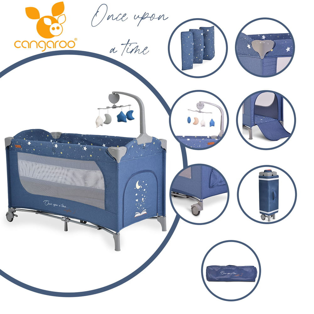 Ez a CANGAROO Once Upon A Time 2 összecsukható utazóágy a tökéletes választás, ha szeretnél egy könnyen szállítható és otthoni használatra is ideális játszóteret a babádnak. A farmer színű design modern és stílusos megjelenést kölcsönöz a terméknek. Az ágy minimalista térigénnyel rendelkezik, így bárhová magaddal viheted, legyen szó hétvégi kirándulásról vagy nagymamánál töltött délutánról. A babák számára kialakított játszótér biztonságos és kényelmes alvó- és játékkörnyezetet nyújt. Mindezek mellett még zenélő forgó játékot is tartalmaz, ami garantáltan leköti a kicsik figyelmét és segíti őket az elalvásban. A CANGAROO Once Upon A Time 2 utazóágy tehát nem csak praktikus, de szórakoztató is!