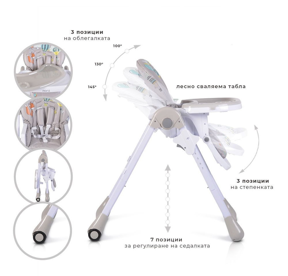 MONI Muffin multifunkciós etetőszék, mintás, 2 kerékkel szürke