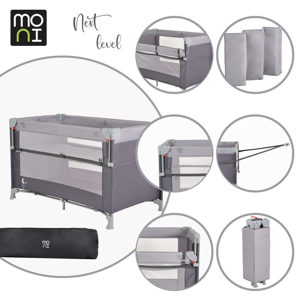 Moni next level utazóágy lehajtható oldalfal 2 szint szürke