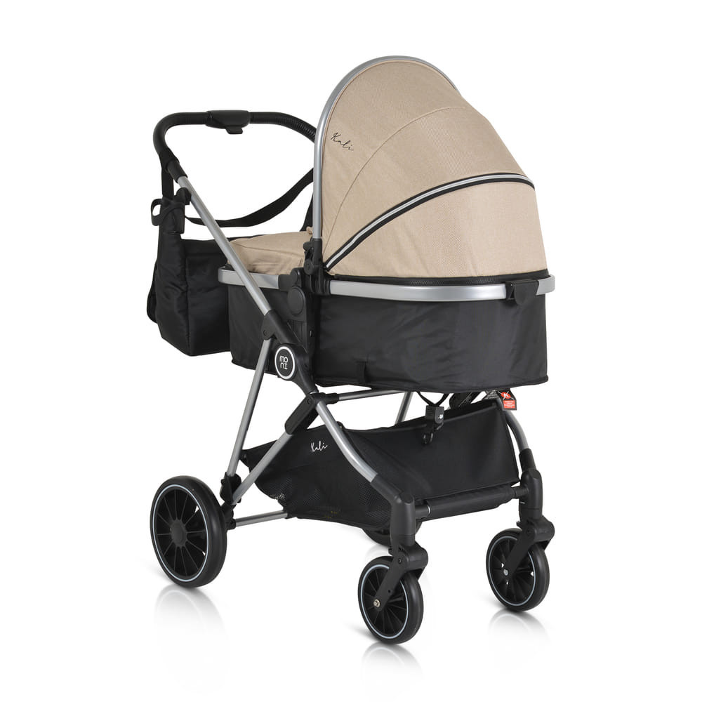 KALI babakocsi 2in1 lapra csukható, megfordítható+táska BÉZS, Praktikus és sokoldalú, a Kali babakocsi az ideális választás, könnyű és manőverezhető. Könnyen átalakítható újszülöttek számára készült mózeskosárból ülőrésszel, széles ülésével és további puha, levehető bélésével kényelmet és kényelmet biztosít babája számára.