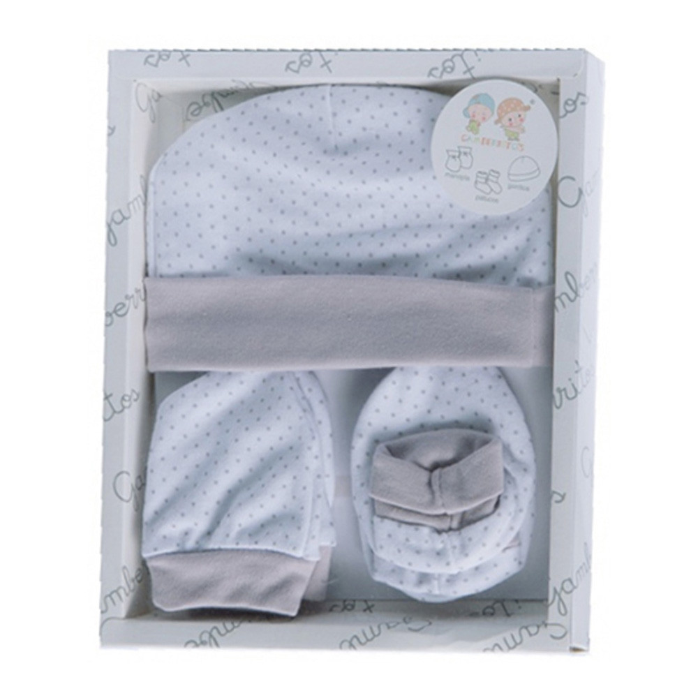 Gamberritos kiegészítõ szett újszülötteknek 3 részes (sapka, kesztyû, kiscipõ) pöttyös szürke 9723