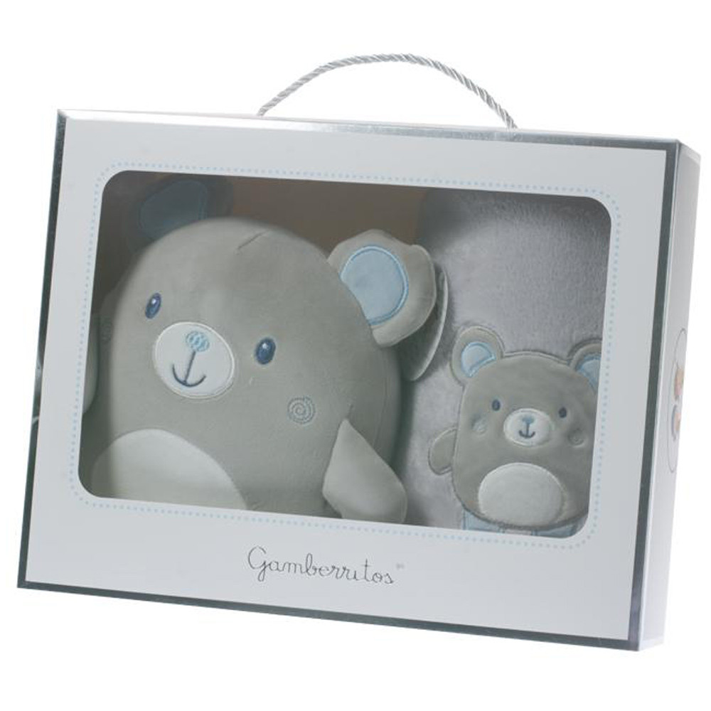 Gamberritos takaró wellsoft 80x110cm plüss játékkal szürke/kék maci 10757