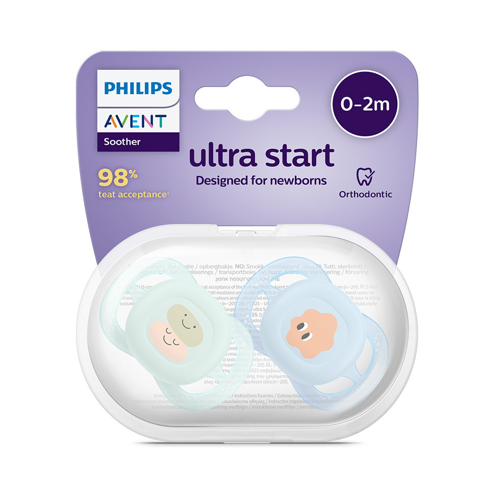 Az elsõ naptól megnyugtatja az újszülötteket. Kicsi és könnyû a legmegfelelõbb illeszkedésért. A lelki nyugalom biztosított az elsõ naptól újszülött gyermekének megnyugtatásához. A Philips Avent ultra start cumi tökéletesen illeszkedik az újszülött gyermek szájához kicsi és könnyû kialakításának köszönhetõen. Nem számít, ki vigyáz a gyermekre, a vigasz és a megnyugvás a közvetlen közelben van.
